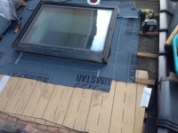 一度トップライトを解体し、周りの瓦も解体し、野地板を補修して下葺き材(防水シート)を施工しなおしです。
