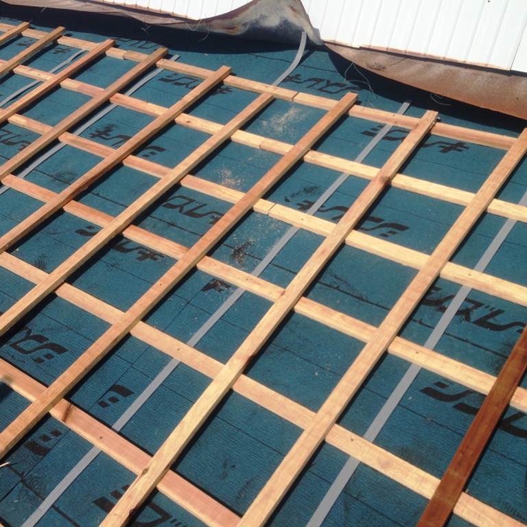 下地施工 縦桟木工法 地葺き 防災瓦、全数釘止めです。 当たり前ですが(-_-;) 施工後
