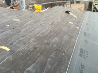 ゴムアスルーフィングが施工されていますが、屋根材に押されて、くっついてしまってます。これでは、どんなに良い下葺き材を使用してもダメですね。
