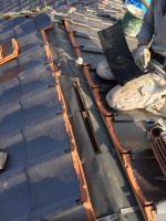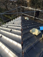 現状コロニアル(カラーベスト)詳細はこちら。まだ何もしなくて大丈夫でしたが、お客様のご要望により、現状の屋根材を撤去してから日本瓦(三州陶器瓦、新東極み)を上げさせていただきました。