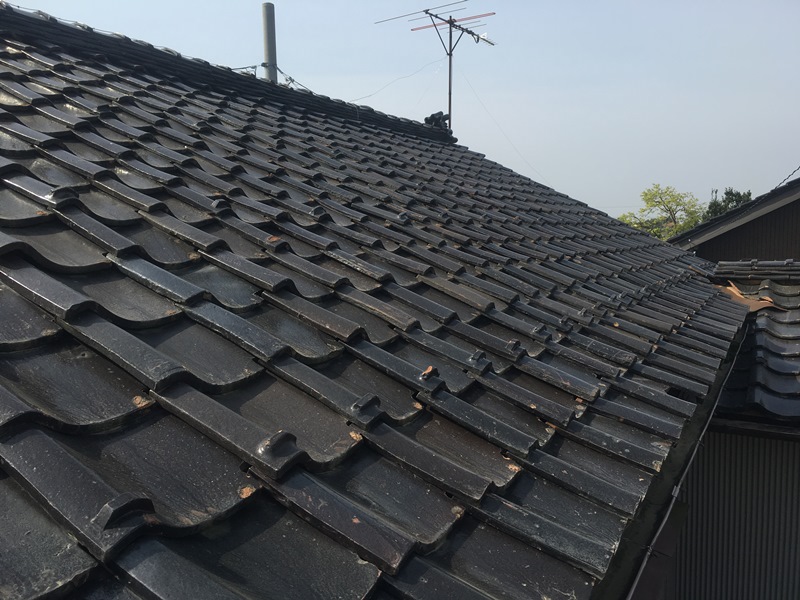 三州陶器瓦和型(日本瓦) 暖勾配用極み 詳しくはこちら 築50年ぐらい。もっとかもしれません。 とりあえずノーメンテナンスだそうです。そんな屋根材は瓦以外にありえません。今まで頑張ってきた瓦に感謝です。 今回は施工画像無しです。ビフォーアフターのみ掲載させていただきます。