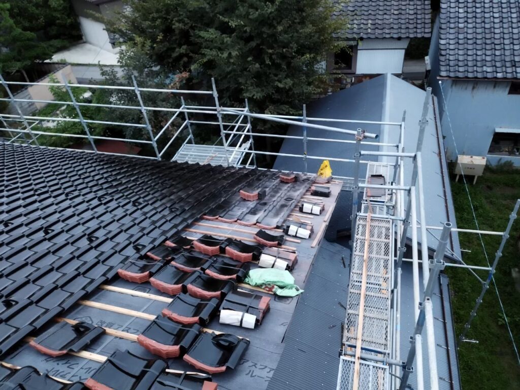 瓦解体⇒野地板工事⇒下葺き施工を繰り返して