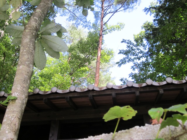 釜戸小屋 いぶし瓦と木々がなんともいえない雰囲気を出しています。